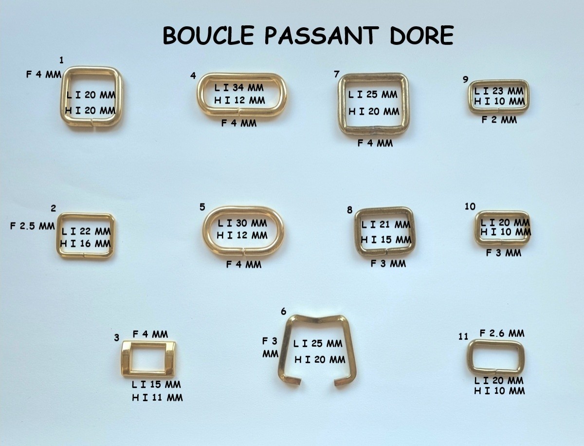 PASSANT OVALE CARRE OU RECTANGLE DORE POUR MAROQUINERIE