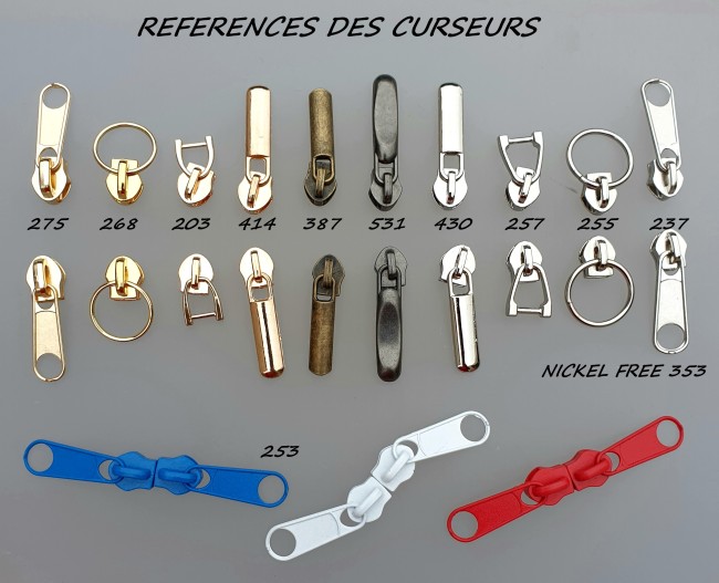 FERMETURE ECLAIR AU METRE + CURSEURS MONTES