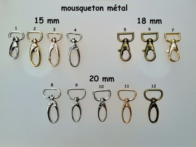 mousqueton pivotant en métal pour maroquinerie crochet argent doré ou bronze 15 mm , 18 mm , 20 mmAccessoire Sac