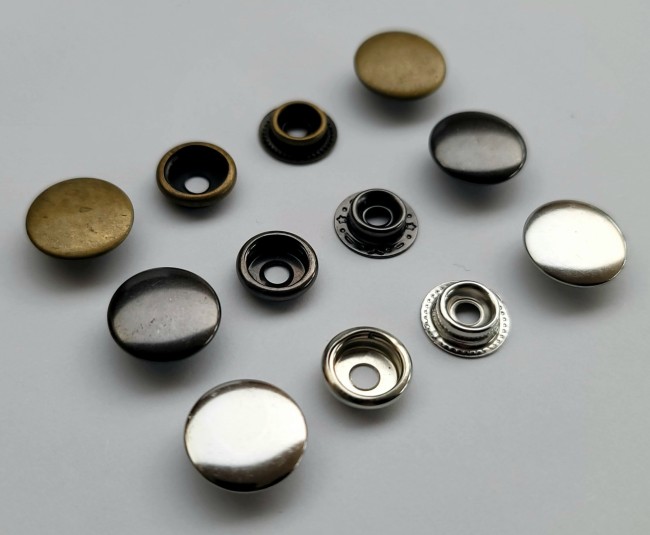 boutons pressions anorak 10 , 12 , 15 , 17 mm , métal coloris noir , nickel , vieux laiton ou doréBouton Pression