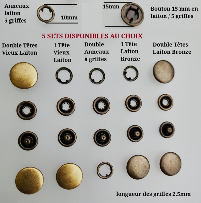Lot de Boutons Pressions camping Double Têtes Vieux Laiton Argenté et Canon de Fusil Livraison CompriseBouton Pression