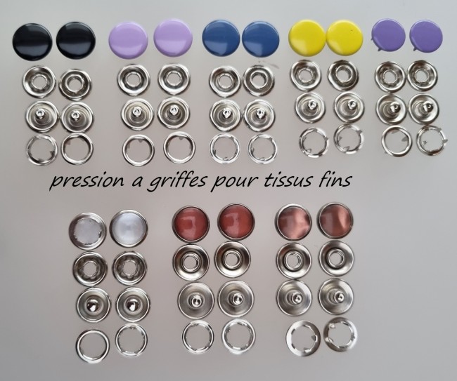 BOUTON PRESSION METAL A GRIFFES POUR TISSUS FIN ET ELASTIQUE 12 MMBouton Pression
