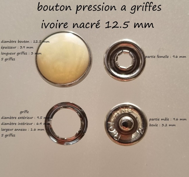 BOUTON PRESSION A GRIFFE IVOIRE NACRE DE 12.5 MM VENDU A L'UNITEBouton Pression